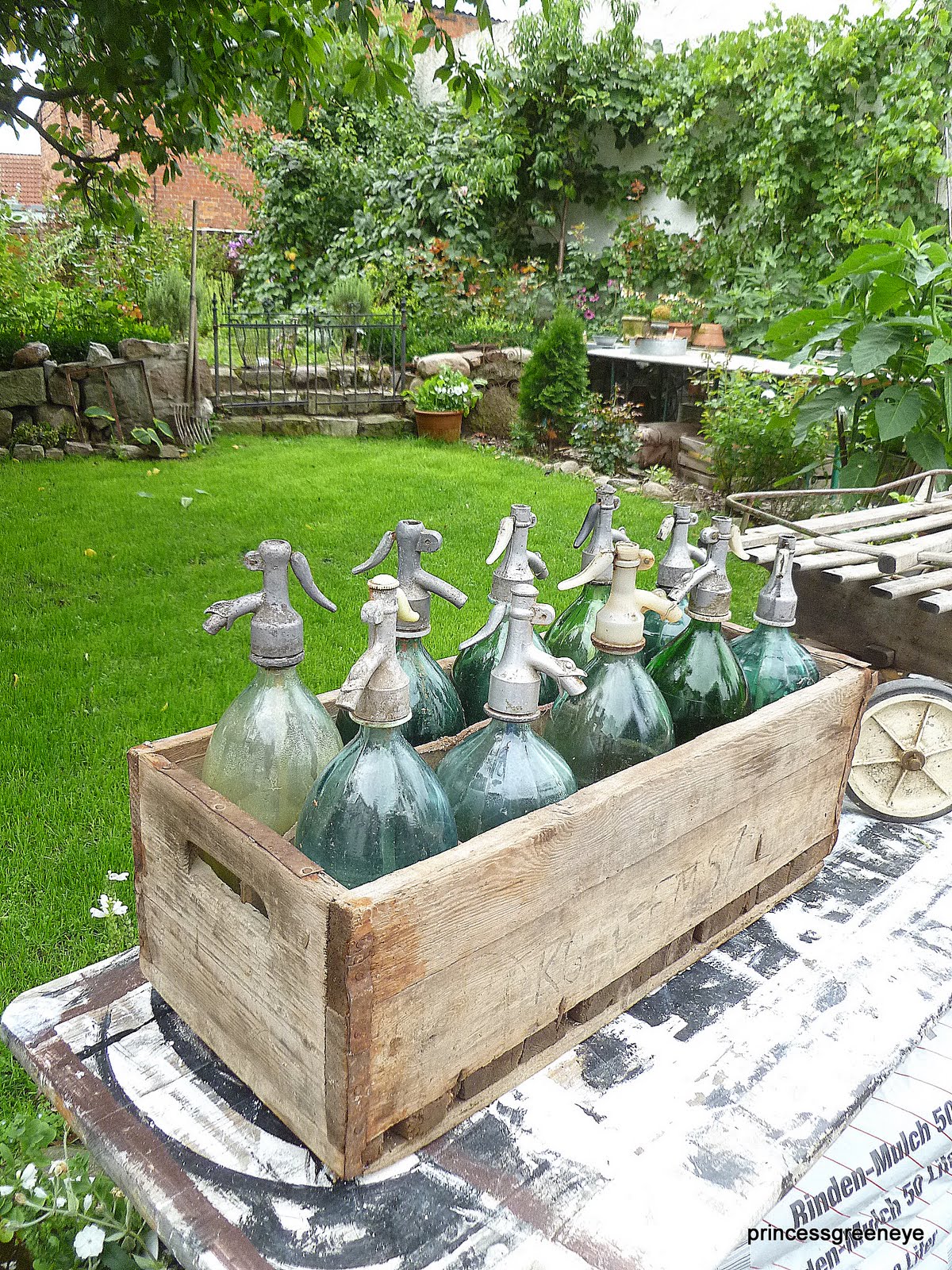 ....und wenn es nachher aufhört zu regnen (hoffentlich), werde ich mit den Kindern sein Erbstück - Grossvater-Sessel - reinholen und schauen, was aus dem alten Stück herausgeholt werden kann !!!! Die Gläsersammlung (ein Teil davon zumindest) ist in den Virtrinenaufsatz "gewandert" ...